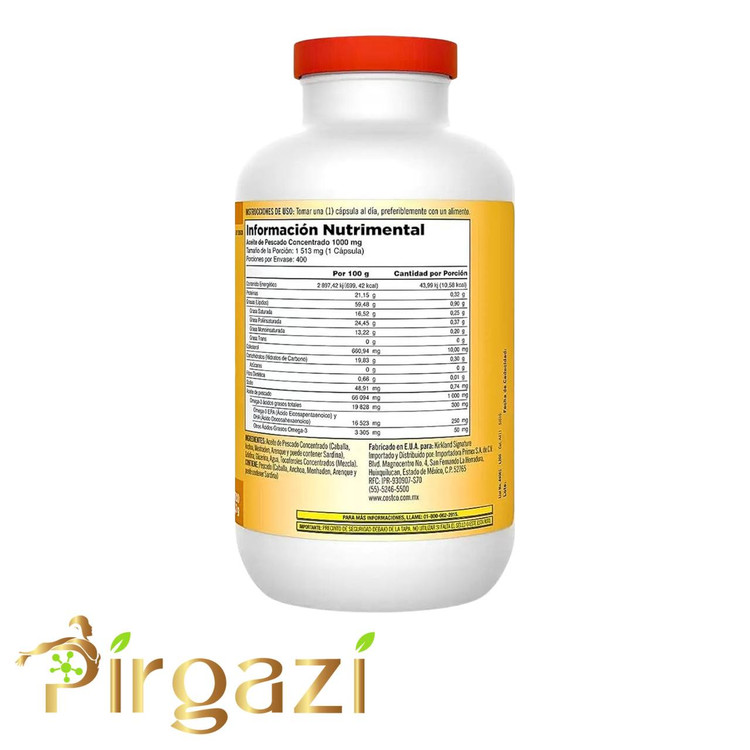 امگا ۳ روغن ماهی ۱۰۰۰ میلیگرم کرکلند Kirkland – ۴۰۰ عددی یک مکمل اسیدهای چرب ضروری است که از روغن ماهی تصفیهشده تهیه شده و به حفظ سلامت قلب، عملکرد مغز و کاهش التهاب عمومی بدن کمک میکند. این محصول استاندارد USP تایید شده و توسط کرکلند آمریکا تولید شده است.