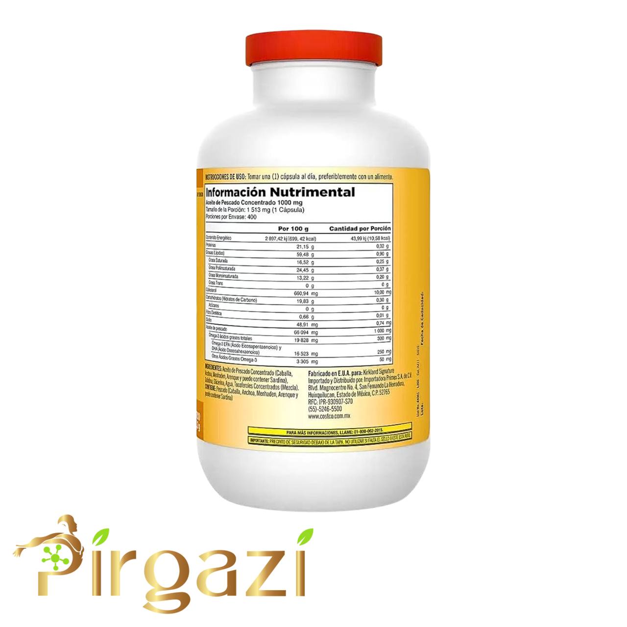 امگا ۳ روغن ماهی ۱۰۰۰ میلیگرم کرکلند Kirkland – ۴۰۰ عددی یک مکمل اسیدهای چرب ضروری است که از روغن ماهی تصفیهشده تهیه شده و به حفظ سلامت قلب، عملکرد مغز و کاهش التهاب عمومی بدن کمک میکند. این محصول استاندارد USP تایید شده و توسط کرکلند آمریکا تولید شده است.